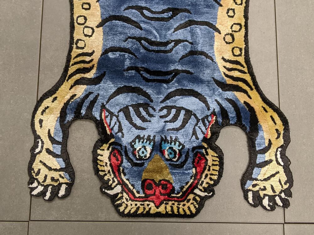 原材料の繊維に空気を沢山含んでおり弾力性や耐久性、保温性に優れ、夏は涼しく、冬は暖かく心地よいのが特徴です。柄は虎や龍などチベットにおいて神聖とされた生き物をあしらったものが多く、独特な色合いが印象的です。